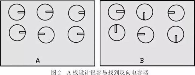 如图2所示,由于A板采用了这种方法,所以能很容易地找到反向电容器,而B板查找则需要用较多时间。