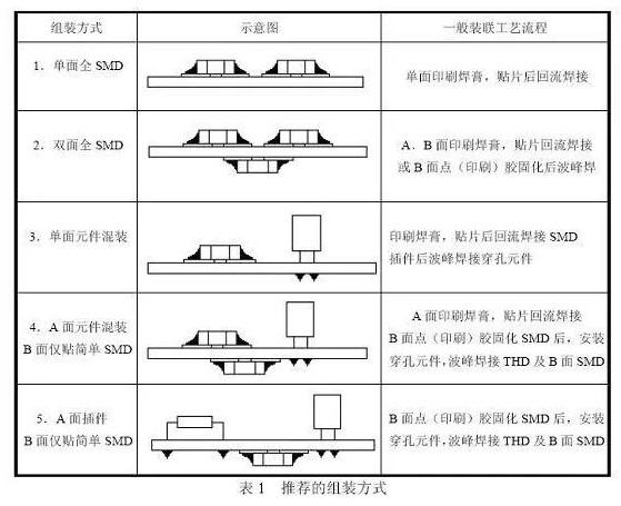 通常针对PCB不同的装联密度,推荐的组装方式有以下几种: