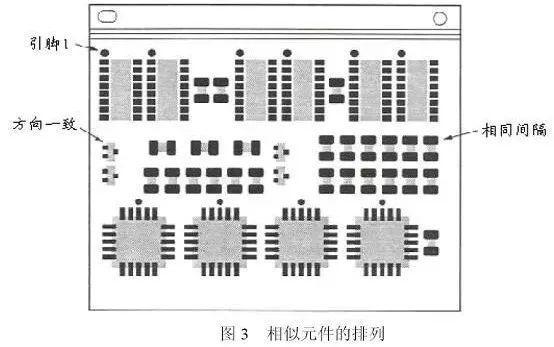 还有,相似的元件类型应该尽可能接地在一起,所有元件的第一脚在同一个方向,如图3所示。
