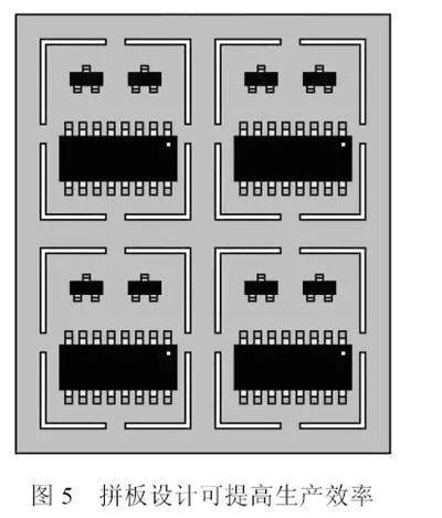 在对外形尺寸较小或外形不规则的PCB进行装联时,会受到很多限制,所以一般采用拼板的方式来使几个小的PCB拼接成合适尺寸的PCB进行装联,如图5。